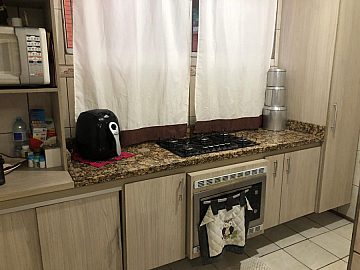 Cozinha com armários planejados, gás encanado, forno elétrico embutido e cooktop